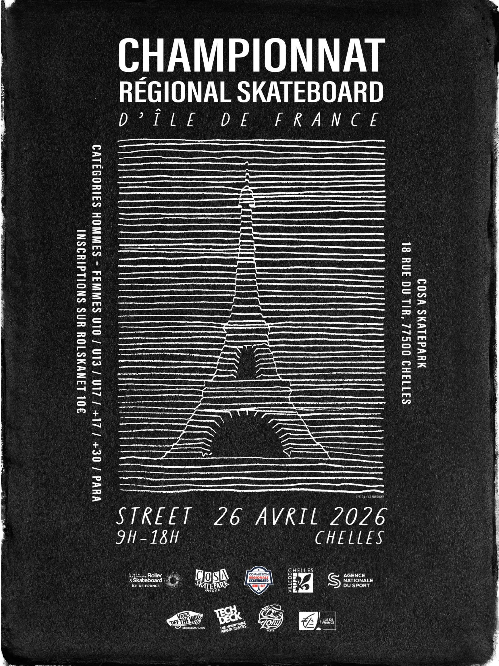 - Championnat régional IDF Street : dimanche 26 avril 2026 – 9h00 / 18h00Nous avons le plaisir de vous informer que les inscriptions aux Championnats régionaux Skateboard Ile de France sont ouvertes.Le championnat régional STREET se déroulera le 26 avril 2026 à Chelles. Inscriptions ouvertes jusqu’au vendredi 24 avril à 12h00.Chacune des compétitions est ouverte aux [lire la suite]