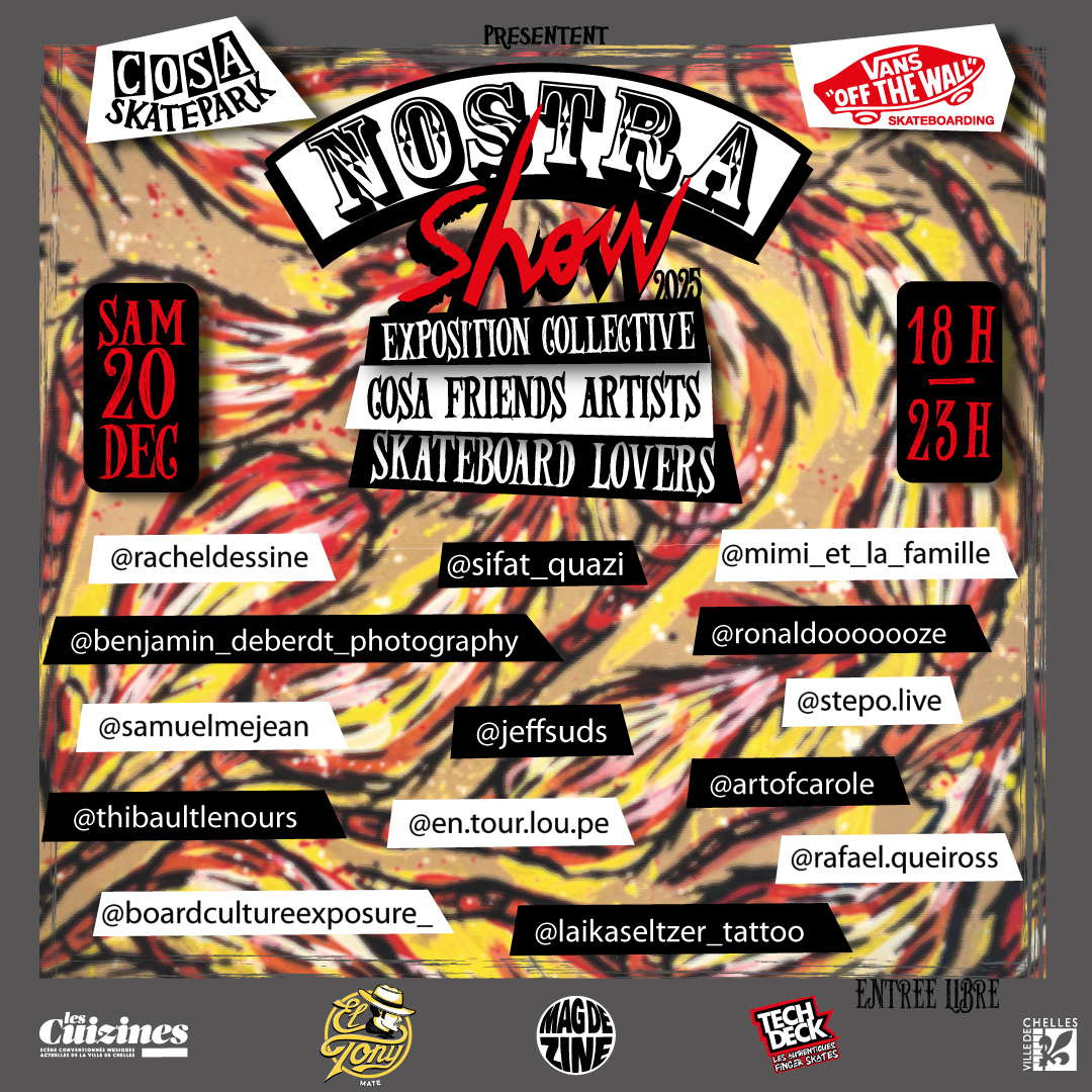 Exposition collective de 12 artistes Art & Skate (photos, dessins, peintures, gravures, tattoo, installations…)